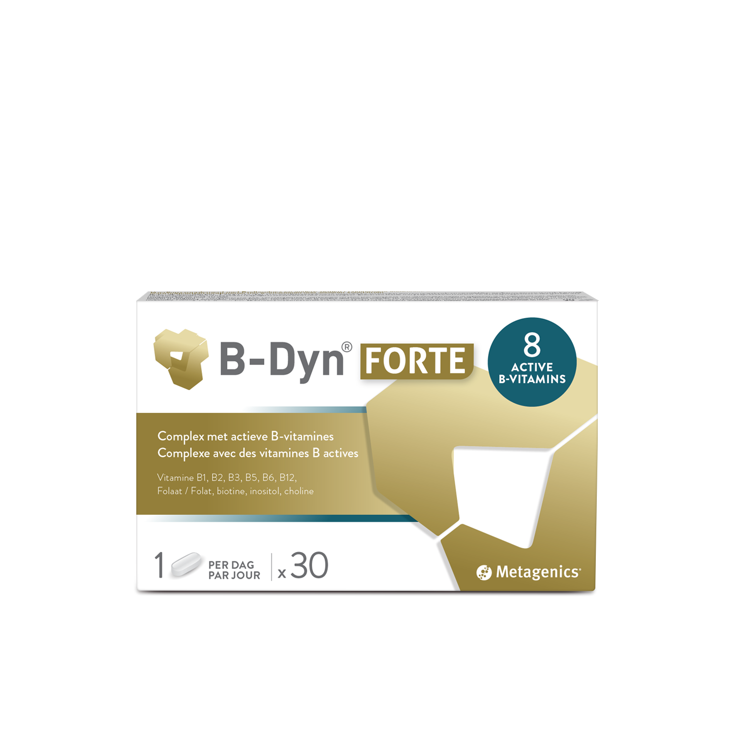 B-Dyn® Forte contient les vitamines B1, B3, B6, B12 et de la biotine, qui contribuent à une fonction normale du système nerveux et à une fonction psychologique normale. B-Dyn® Forte contient de plus la vitamine B5, qui aident avec les vitamines B1, B3, B6 et B12 à diminuer la fatigue.