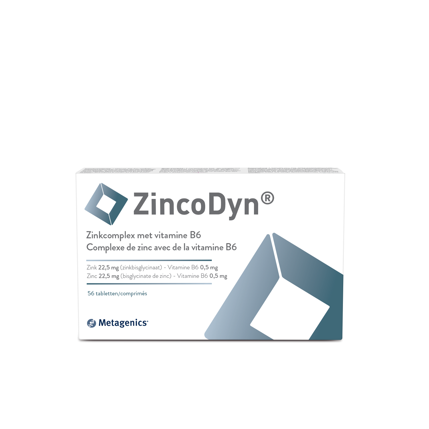 ZincoDyn® bevat zink dat bijdraagt tot de instandhouding van normale nagels, haar, huid, botten, cognitieve functie, immuunsysteem, vruchtbaarheid en voortplanting, en tot de bescherming tegen oxidatieve stress.